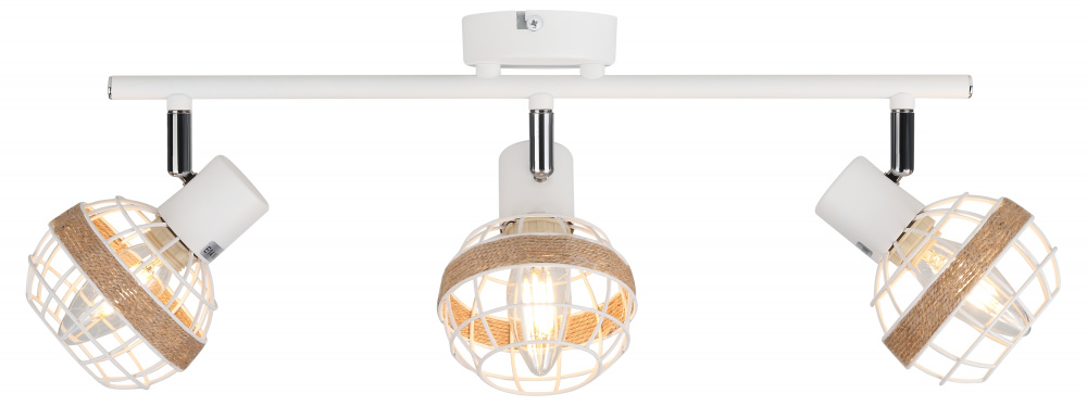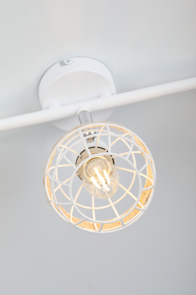 Стильные белые поворотные споты с решетчатыми плафонами, декорированные джутом. Доступны в вариантах на 1, 2 и 3 лампы, идеально подходящих для любого интерьера. Эти светильники добавят уюта в атмосферу вашего дома