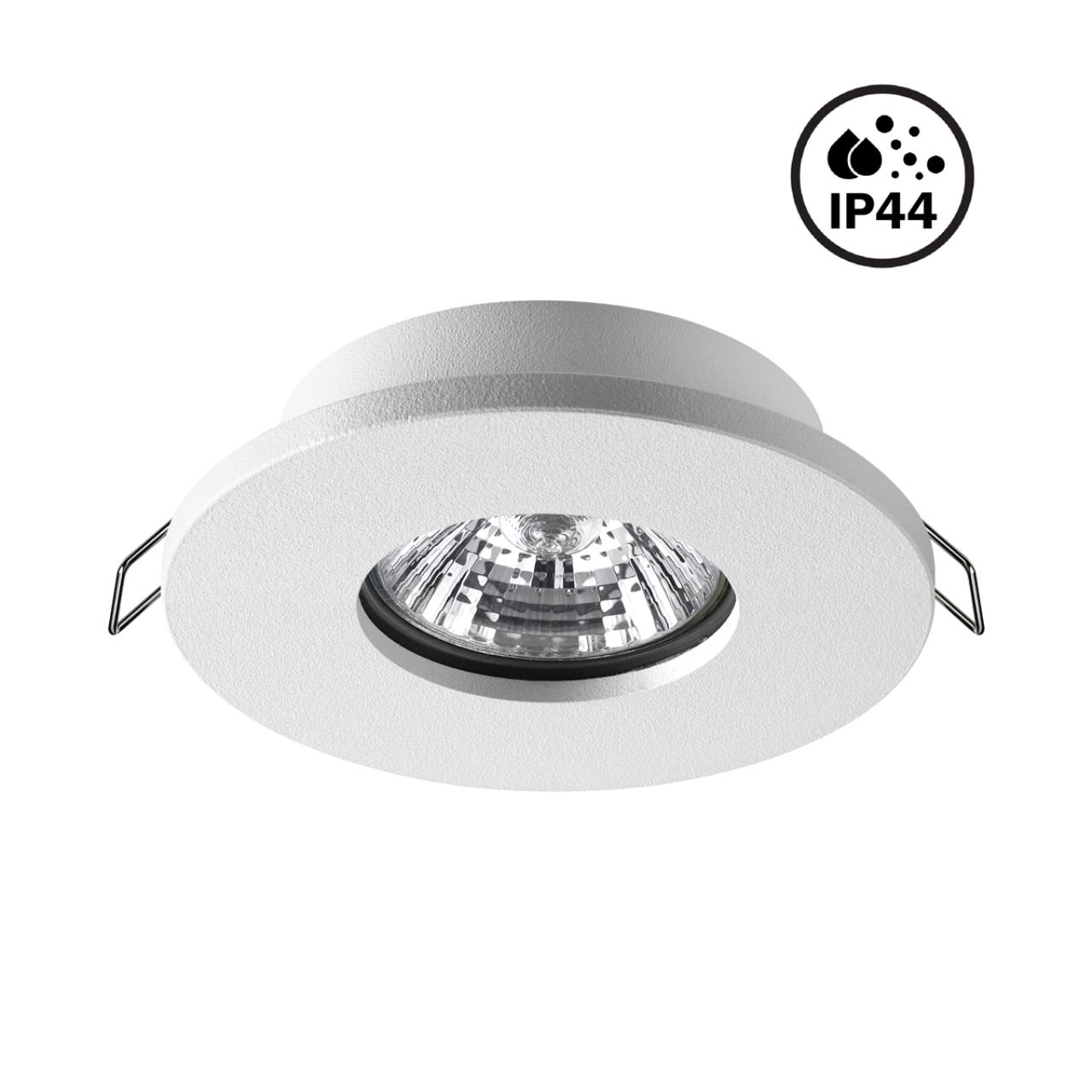 Встраиваемый неповоротный светильник с повышенной степенью пылевлагозащиты (IP44) подходит для установки во влажные помещения. Лампа в комплект не входит.