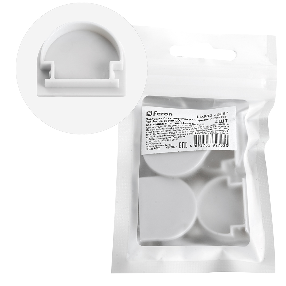 Заглушка для профиля FERON LD382 «без отверстия», цвет белый, в комплекте 4 шт, 24*6*21мм