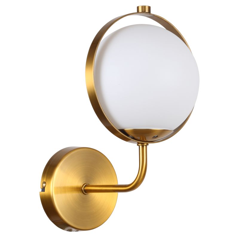 Бра 2018/03/01W Stilfort серии Rozetto / Розетто - настенный светильник выполненный в стиле модерн. Арматура, представленная в цвете "золото", прекрасно гармонирует с белым шарообразным стеклянным плафоном.
