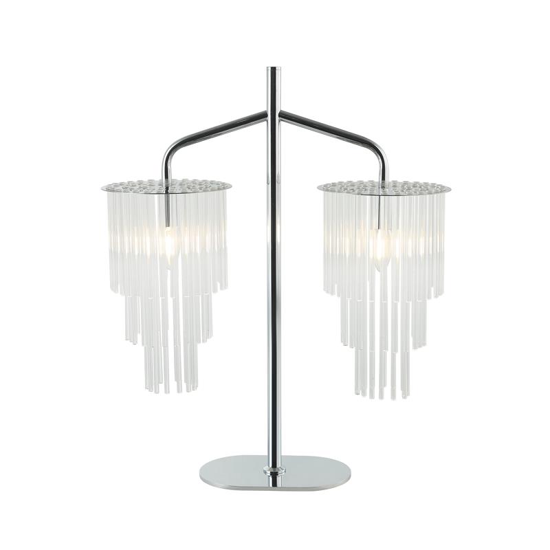 Светильник настольный из коллекции Imposio / Импозио выполнен из металла, гальванизированного в цвет хрома. Декор из стеклянных прозрачных трубочек крепится на нержавеющую сталь, отполированную до зеркального блеска. Современная форма и высокое качество светильников идеально подойдут в современные и дизайнерские интерьеры.