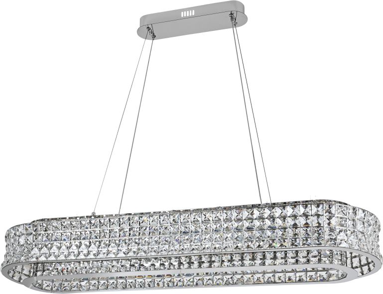 Люстра подвесная вытянутой формы эксклюзивной коллекции Karnelli / Карнелли выполнена из нержавеющей стали хромированного цвета и декорирована текстурным хрусталем высшей категории. Модель комплектуется пультом дистанционного управления 2,4G и драйвером высокого качества европейского стандарта T?V, обеспечивающим переключение трех режимов световой температуры и диммирование. Светильник идеально впишется в современные и дизайнерские интерьеры. Из данной коллекции светильников можно сделать индивидуальный заказ любого цвета и размера.