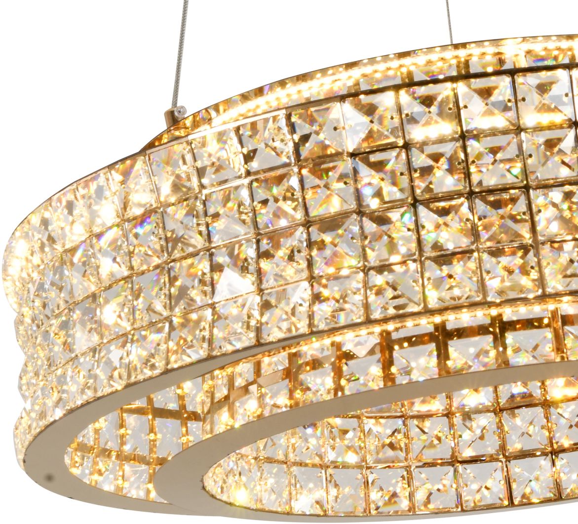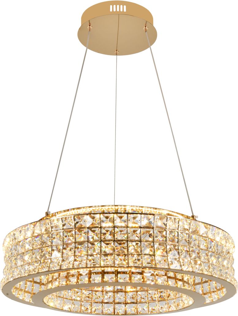 Люстра подвесная эксклюзивной коллекции Karnelli / Карнелли выполнена из нержавеющей стали золотого цвета и декорирована текстурным хрусталем высшей категории. Модель комплектуется пультом дистанционного управления 2,4G и драйвером высокого качества европейского стандарта T?V, обеспечивающим переключение трех режимов световой температуры и диммирование. Премиальное качество и неповторимыи? дизаи?н светильников идеально подои?дут как в классические, так и современные дизайнерские интерьеры. Из данной коллекции светильников можно сделать индивидуальный заказ любого цвета и размера.