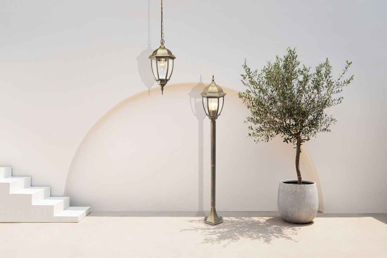 Уличный светильник из коллекции «Фабур» по достоинству оценят любители  классики. Основание из алюминия цвета старинной позолоты напоминает об античных временах. Под стать ему – форма стеклянного плафона, традиционная для интерьеров дворцовых замков. Такой светильник идеально дополнит изысканный экстерьер загородного дома, дизайн которого ориентирован на благородную классику. Рекомендуемая площадь освещения порядка 5 кв.м.